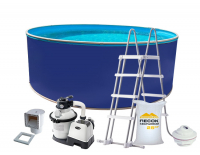 Расширенный комплект с дополнительным оборудованием : стандартная заводская комплектация плюс песчаный фильтр, лестница, песок кварцевый для фильтра.